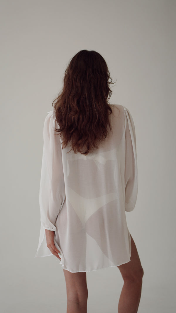 The Amara Cover-Up by Amaiah Resort Wear embodies timeless sophistication with a contemporary twist. Crafted from a lightweight, semi-sheer fabric that flows gracefully with movement, it features elegant puff sleeves and a relaxed shirt-style silhouette for an effortlessly feminine look. Designed for versatility and comfort, this refined cover-up drapes beautifully over swimwear or resort separates, offering a seamless transition from day to evening. Amara captures the spirit of understated luxury and modern coastal elegance.